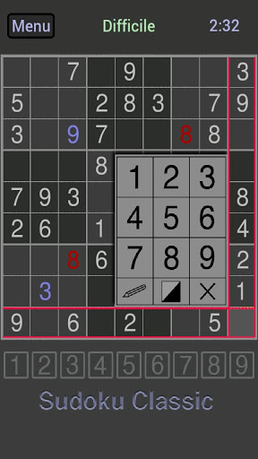Sudoku est classique avec une interface simple.