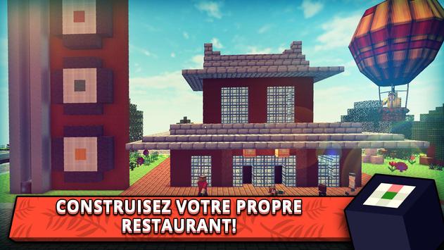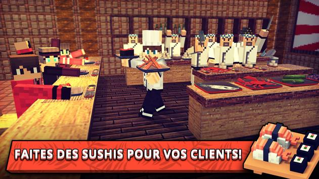 Exploration, artisanat et construction dans une véritable ville entièrement fait de blocs ! Commencez à vous promener en ville, rencontrer des gens et faites-vous des amis! Conduisez des voitures! Vous pouvez même construire votre propre ville! Commencez simplement à placer des blocs ou à démolir quelques vieux bâtiments. Vous pouvez agrandir votre restaurant et ajouter n'importe quelle décoration ! Lorsque vous êtes dans la cuisine, vous pouvez également améliorer vos instruments de cuisine et débloquer de nouvelles recettes de sushi!