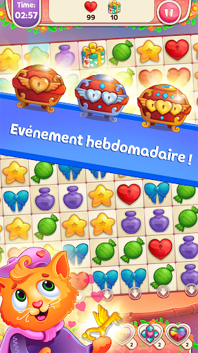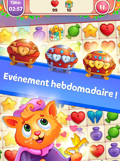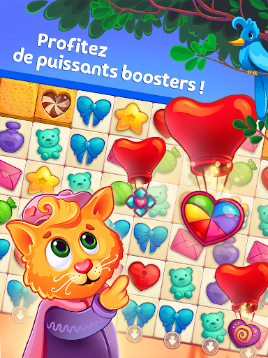 Utilisez le booster de cœur qui explose, le booster ou le booster de coeur coloré pour vous aider à collecter les bonbons, les étoiles, les lettres roses, les coeurs, les arcs et plus encore. Faites de grands matchs pour créer plus de bonus, descendez les beaux cadeaux et collectez les délicieux chocolats.