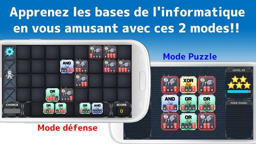 Le but du jeu est d'éliminer les "BUG" en combinant 4 types de panneaux de langage binaire.