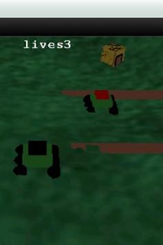 3D Tank game. Move around landscape shooting huts and enemy tanks. Raise gun to change gun range. Use rotate image to move tank. Up arrow to start tank. Lightening bolt to fire. Raise gun using indicator on the right.