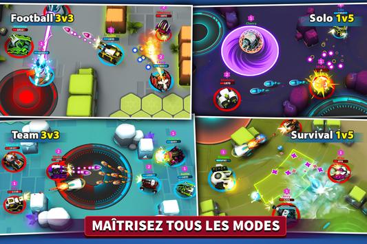 REJOINS des joueurs du monde entier et participe à des batailles de tanks hilarantes qui ne durent que 5 MINUTES ! Viens faire l’expérience d’un jeu multijoueur en TEMPS REEL, de tanks, de robots et d’armes géniales modélisés en 3D, le tout dans 7 arènes galactiques différentes.