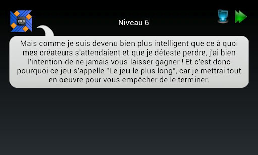 Voilà, que la curiosité vous emporte est une bonne chose, mais ne soyez alors pas déçu par la suite si cela ne correspond pas à vos attentes. Et si, par le plus grand des miracles, vous parvenez VERITABLEMENT à terminer ce jeu, alors ne venez pas poster des commentaires pour vous plaindre sur Google Play, mais prenez-le plutôt comme une réussite de votre part.