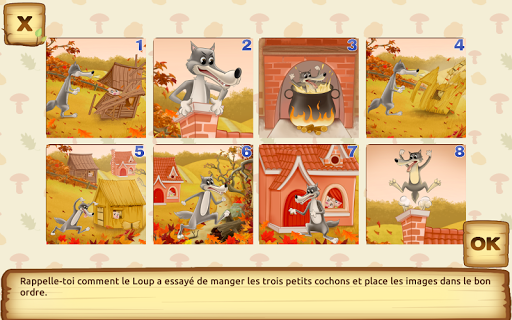 Cette histoire interactive est basée sur le conte « Les Trois Petits Cochons » et inclut de nombreux jeux et activités logiques pour les enfants de 3-5 ans. Cette application a été conçue par une pédopsychologue pour améliorer l’apprentissage de base. Les activités développent la logique, la mémoire et l’attention. Elles sont aussi disponibles hors de l’histoire, dans 4 niveaux de difficulté chacune.
