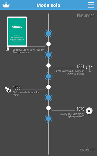 Dans ce jeu, vous allez devoir placer des événements dans le bon ordre. Par exemple, vous devrez décider ce qui est arrivé en premier: