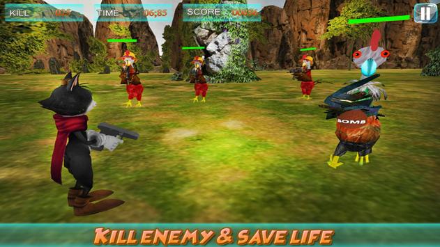 In this shooting game play like a security officer but also you have to save yourself from enemy attack. The real fun of this game is when you know that the Tom Cat is playing a role of security officer and your enemies are crazy chicken they can attack on you because they are sharp shooter, archers and suicide bomber. You have to save your life because after every attack your health will decrease. Most important thing is save yourself from suicide bomber because if he comes near you there will be a blast and you will lose your life. Show your shooting skills and play like an elite killer to reach the next level of this shooting game. Therefore, kids are you ready for this ultimate combat of madness? Download this game and show your friends how professional gun shooter you are.