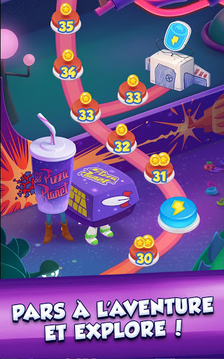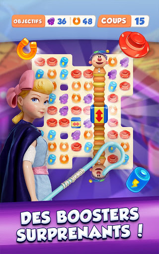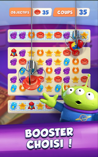 • Les jouets viennent à ta rescousse grâce à des boosters comme le Grappin pour échanger des pièces, les Soucoupes volantes pour éliminer des obstacles, et l'Écran magique pour chambouler la grille