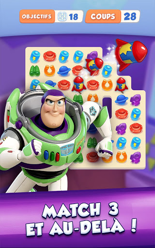 Le monde de Toy Story de Disney•Pixar prend vie dans ce jeu unique entièrement conçu dans l'univers de Toy Story, y compris celui du prochain film, Toy Story 4 ! Aide Woody, Buzz, d'anciens et de nouveaux amis à déverrouiller leurs histoires une aventure à la fois pendant que tu explores des lieux cultes comme la chambre d'Andy, Pizza Planet et bien plus encore. Surmonte des obstacles en faisant des associations et en terminant des centaines de grilles de match 3 passionnantes. Entre dans le monde magique des jouets en récupérant et assemblant des Sets de jeu de tes personnages favoris et débloque des aventures bonus. Avec la magie de Toy Story au bout des doigts, le match 3 est ton ami !