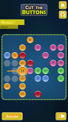 Amuse toi à couper les boutons dans ce jeu de logique gratuit ! Dans Cut The Buttons, vous devez déplacer un bouton de couleur pour l'aligner avec 2 autres boutons avec des couleurs similaires. Aligner tous les boutons pour effacer le tissu et gagner le niveau. Si vous êtes intelligent et vous aimez exercice de cerveau, vous allez adorer notre jeu de puzzle en ligne. Il y a plus de 600 niveaux dans ce jeu de bouton coloré donc vous allez pouvoir améliorer votre logique tout en vous amusant.