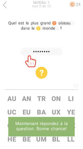 Le jeu est plein de faits étonnants et inattendus sur le monde! Et il y a plus: non seulement vous devez trouver les réponses aux questions, vous devez compléter aussi ces questions! Utiliser les images comme indices afin de trouver les mots manquants, puis répondez à chaque question.