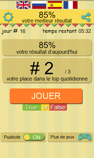 Vous voulez vérifier votre érudition et connaissances pour rivaliser avec d'autres joueurs? Si oui, vous offrir un jeu que 'Vrai ou faux' (True Or False).
