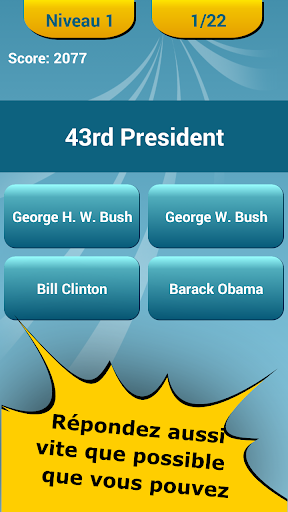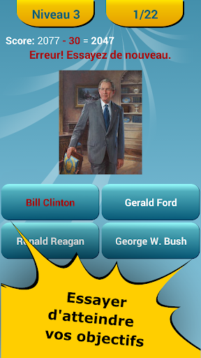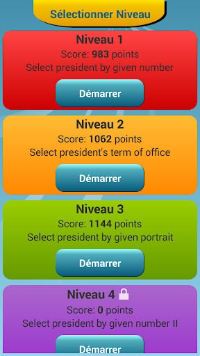 - Niveau 3 et 6 - Sélectionnez le nom du président par son portrait officielle,