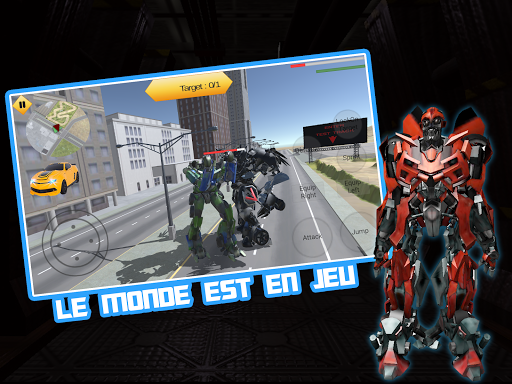 Conduisez votre véhicule robotique 2016 ou changez-le en mega robot dans ce jeu de robots. Cette bataille de robot futuriste 2017 vous donnera l'expérience de combat de robot 3D. Dans ce superbe jeu de robo, vous allez tester vos compétences de contrôle des méga bots et de la bot auto. Il s'agit d'un nouveau type de jeux de guerre robot où vous vous sentirez comme à l'avenir en raison de ces nouveaux jeux de robots avec de nouveaux Combat Style. Ces jeux de guerre de robots brillants vous donneront certainement la pratique pratique des meilleurs jeux de robots de voiture 3D.
