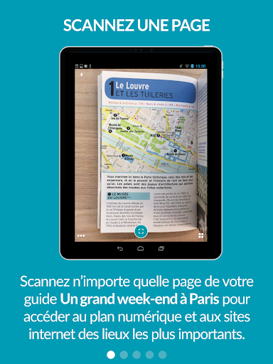 Cette application vous permet d'avoir sur votre portable le plan numérique du guide Un Grand Week-end à Paris. Vous pouvez vous géolocaliser, naviguer sur ce plan, repérer les sites et adresses du guide et consulter leurs descriptions. Pour y accéder, rien de plus simple ! Avec l'application, prenez en photo n'importe quelle page du guide et vous pourrez accéder au plan et à des liens vers les adresses.