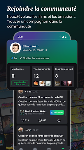 Rejoignez la communauté MovieBox : Entrez en contact avec d'autres cinéphiles, partagez vos recommandations et participez à des discussions sur vos films et émissions de télévision préférés. La communauté MovieBox est un espace dynamique et accueillant pour les passionnés comme vous.