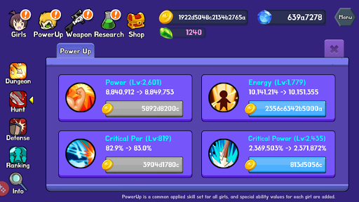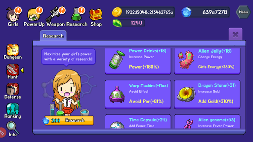 * La recherche est équipéeAvec une variété de technologies pour maximiser les capacités des filles et des armes.