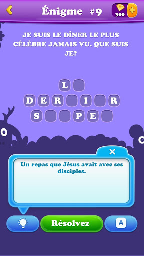enigmes en français fera temps plus amusant. Déplacez les frontières de votre imagination et développez votre pensée logique; Qui vous mènera à la bonne réponse.