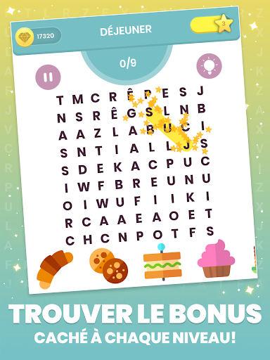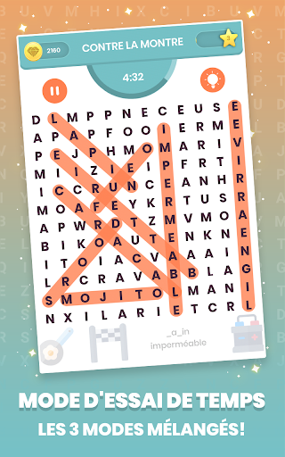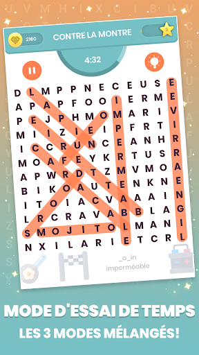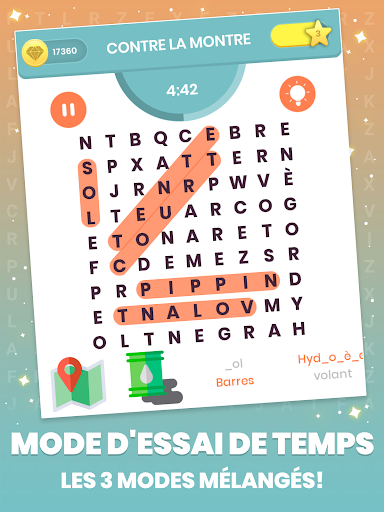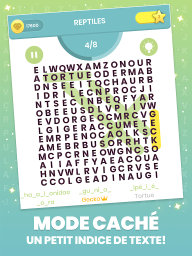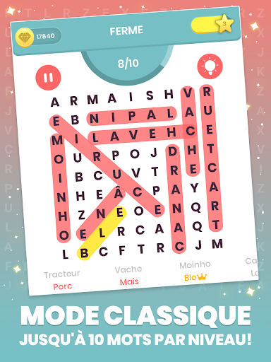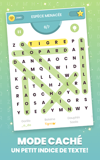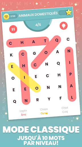 Le niveau difficile sera augmenté progressivement sur chaque catégorie, chaque mode de jeu offrira également un nouveau défi pour le genre recherche de mot.