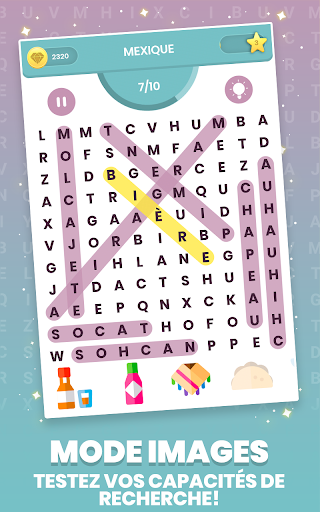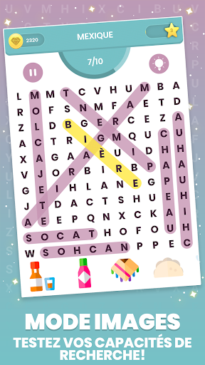 Images: Vous obtiendrez un ensemble de photos qui vous guideront pour la recherche de mots. C'est la version de puzzle ultime pour les chercheurs de mots!