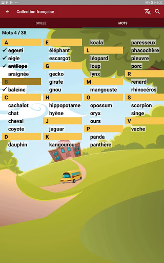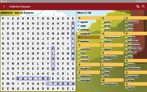 141 grilles de mots cachés : 34 en anglais, 14 en bulgare, 24 en espagnol, 40 en français et 29 en portugais.