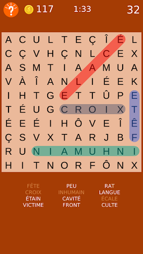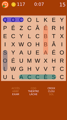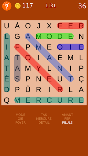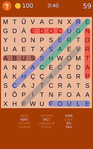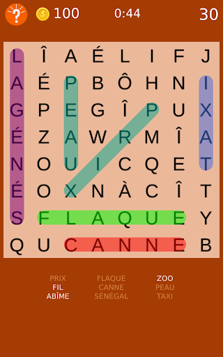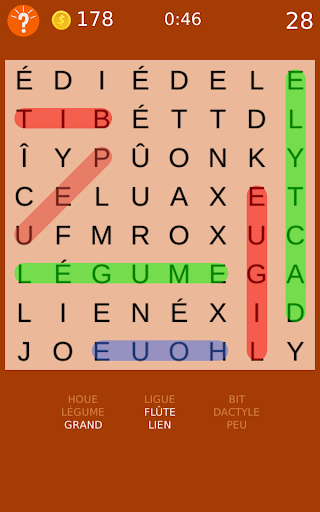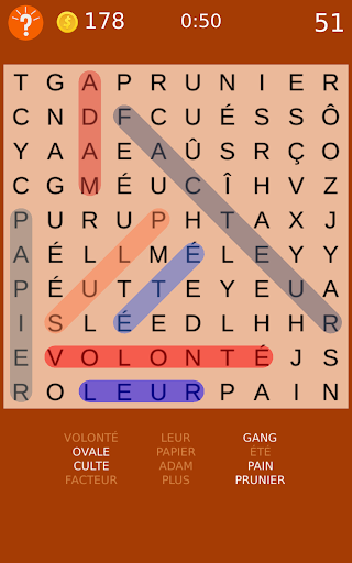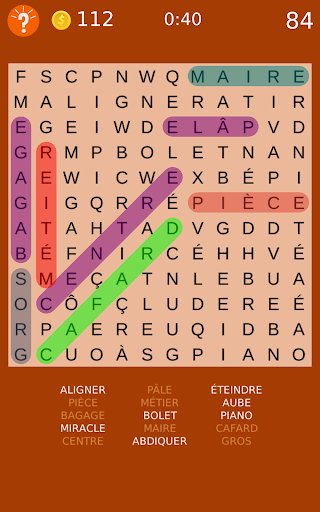 Amusement cochant mots classiques cachés sur le plateau.