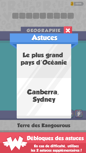 🔹Chaque niveau vous affiche les lettres qui forment la réponse. Ceci peut vous aider dans votre réflexion.