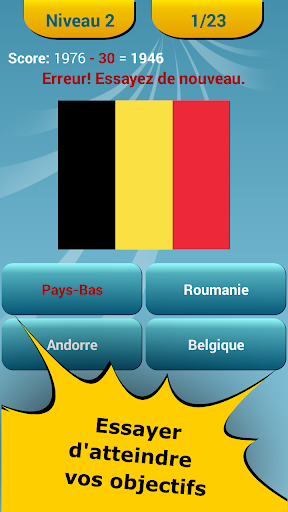 - Chaque niveau comprend 23 drapeaux de pays(pour un total de 230 drapeaux à deviner!),