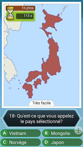 Les pays sont classés par difficulté, si au début, les jeux sont très simples, mais seront de plus en plus difficile de répondre, à la «fin» de niveau, ne convient que pour de vrais professionnels de la géographie.