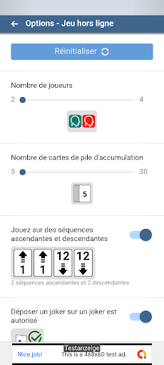 • Choisissez si vous jouez classiquement avec «quatre piles de séquence ascendantes» ou avec «deux piles de séquence ascendantes et deux descendantes»