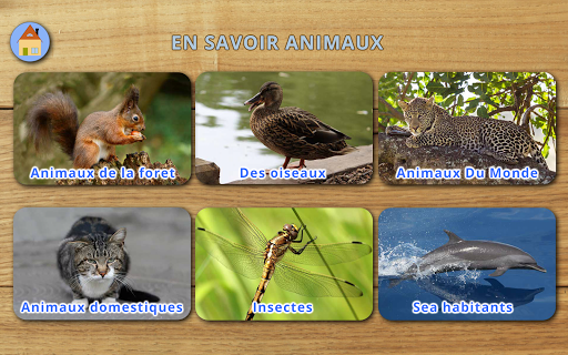 La version gratuite est composée de 3 sections sont: animaux sauvages, les oiseaux et les animaux du monde, ainsi que le mode diaporama avec les cartes de l'animal de la forêt.