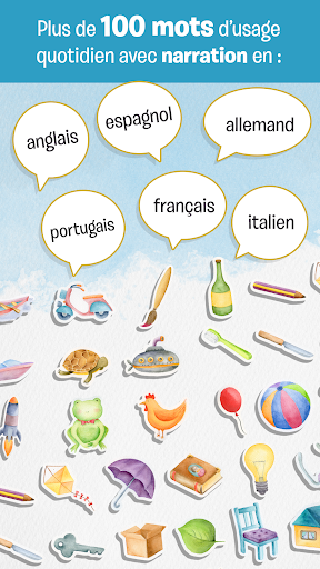 😍 La bonne prononciation ! Ici les enfants apprendront de nouveaux mots amusants en associant les jolies illustrations faites à l'aquarelle à leur bonnes prononciations (anglais, espagnol, portugais, français, italien et allemand). On peut changer la langue quand on veut.