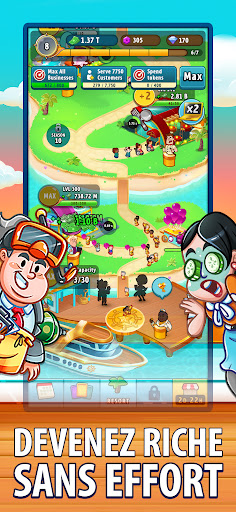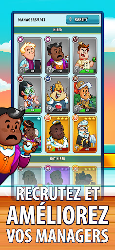 Recrutez différents managers pour vous aider à créer le paradis idéal ! Chacun possède ses propres aptitudes spéciales ! Promouvez-les pour accroître leur capacité à générer du cash et pouvoir ainsi vous détendre et vous concentrer sur le développement de votre empire !