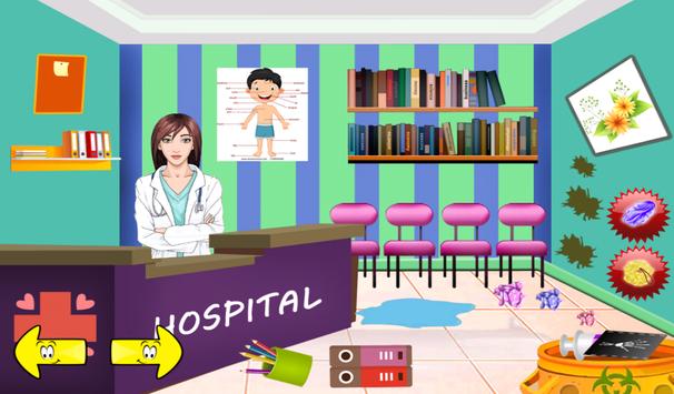 Hello. When you go into a hospital just see things clean all the things that have been washed or cleaned by many people to reach this state. After surgery or after surgery, have done much cleaner, as well as all hospital wards. In this game gives you the chance to see all the processes by which a hospital pass when it comes to cleaning, but we ask you to give us a helping hand to finish faster.