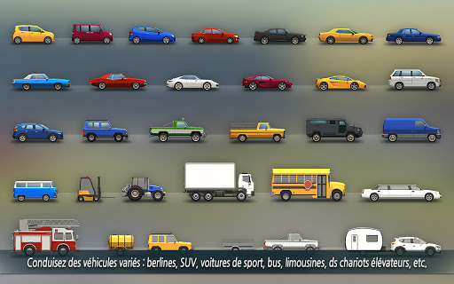 Conduisez 30 modèles de voitures et maîtrisez tous les types de stationnements.