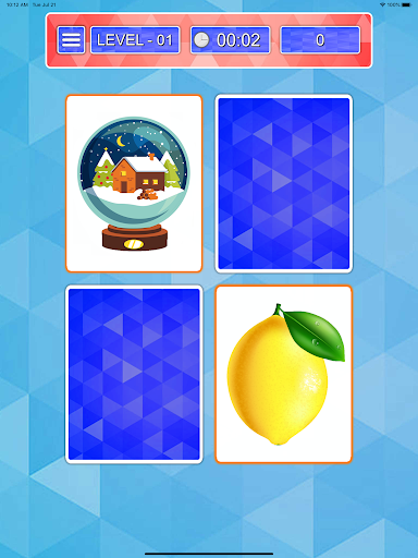 L'interface est lisse et simple, en plus des images sont belles, nous croyons que vous comme ce jeu. Vous pouvez passer le temps agréable et loisirs avec le jeu, quant à lui, vous pouvez tester et d'améliorer votre mémoire et l'attention, si vous êtes un enfant ou un adult.It est un jeu de mémoire pour tout le monde étaient il faut distinguer entre les belles images, plein de couleurs et trouvez les paires. Prenez ce défi mémoire tous les jours et vous verrez la différence !.
