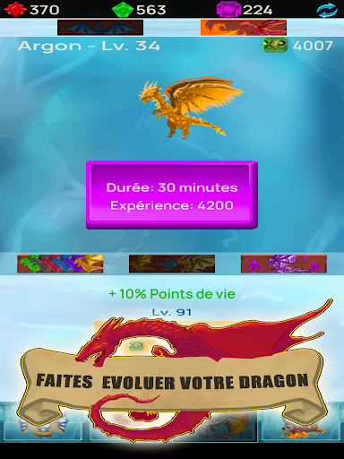 → Envoyez votre dragon à la chasse pour améliorer ses capacités et son niveau.
