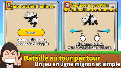 Avec un seul smartphone ou tablette avec un ami, vous pouvez profiter du jeu multijoueur Le choc des animaux - 1 contre 1. Lorsque vous jouez seul, essayez de jouer en équipe 1 contre 1 avec d'autres joueurs. Le choc des animaux - Le jeu multijoueur 1 contre 1 est un jeu amusant et relaxant pour les joueurs qui aiment les jeux occasionnels et les jeux de stratégie. Le choc des animaux - Le jeu multijoueur 1 contre 1 est également un jeu en ligne à 2 joueurs pour garçons, filles et enfants. Rejoignez le jeu multijoueur en ligne facile à jouer! Vous pouvez vaincre votre adversaire avec un seul doigt. Le choc des animaux - Le jeu multijoueur 1 contre 1 est gratuit à télécharger et à jouer. Laissez-nous télécharger et expérimenter ce jeu de combat et le partager avec vos amis dès maintenant!