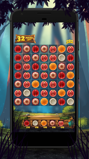 Find the corners of a rectangle that match each other to match 4, turning the contents of that rectangle into the same fruit and scoring points towards your target.