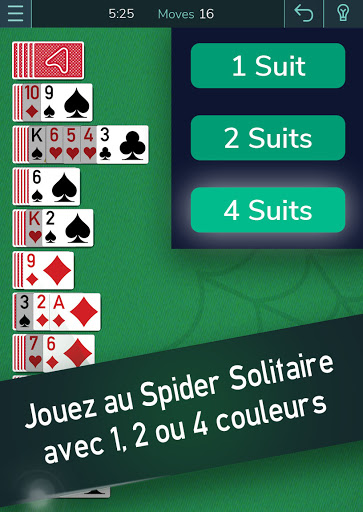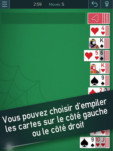 Avec Arkadium Spider Solitaire, détendez-vous tout en faisant travailler vos méninges à tout moment de la journée. Installez ce jeu de solitaire gratuit dès aujourd'hui ! Arkadium Spider Solitaire propose une nouvelle vue horizontale qui agrandit les cartes pour une expérience de jeu optimale. Testez vos capacités de déduction en prévoyant plusieurs coups à l'avance.