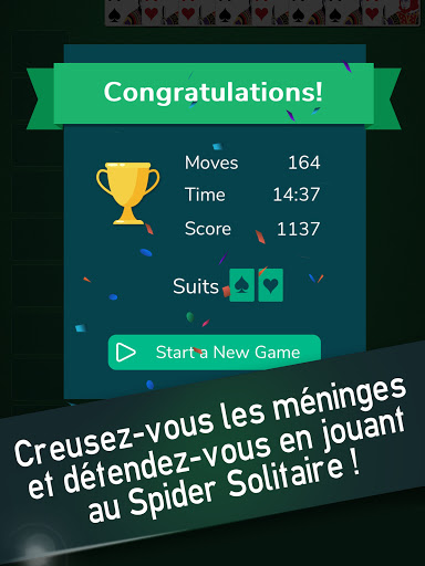 En jouant au Spider Solitaire, vous pourrez tester vos capacités de déduction en prévoyant plusieurs coups à l'avance. C'est un excellent entraînement pour votre cerveau!