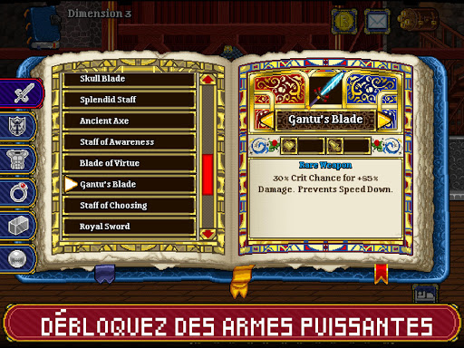 Le seigneur des ténèbres a enfermé moult objets, butins et colifichets légendaires dans son château, derrière une barrière de gardes, de pièges et de subterfuges. Vous avez peur ? Passez votre chemin. Vous serez plus en sécurité à la taverne, à engager des accros au soda pour faire ce travail ingrat à votre place. Récupérez le butin qu'ils vous rapportent pour améliorer votre taverne, votre ville et votre armure afin d'attirer des aventuriers plus forts, puis recommencez l'opération. Construisez votre ville, montez une puissante équipe et découvrez si vous avez le cran qu'il faut pour sortir du donjon jusqu'à la prochaine dimension et au-delà.