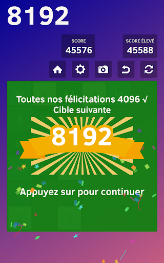 Plus de mode sans fin, vous avez plutôt la cible suivante. Si vous gagnez 2048 points, cible suivante 4096. Si vous gagnez 4096 points, cible suivante 8192, etc.