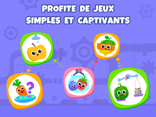 Explorez un monde étonnant d'aliments sains avec des énigmes, des tâches de logique et d'adorables petites histoires sur la cuisine et le shopping dans application pour enfant. Profitez de jeux enfant 5 ans avec d'amusants personnages de fruits et légumes : carotte, fraise, citrouille, tomate, brocoli et 20 autres.
