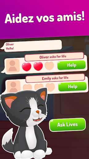 C'est vrai - vous pouvez jouer à ces jeux d'animaux jeux d'animaux hors ligne, et vous pouvez également profiter de jeux de chat avec vos amis en ligne. Donner vie à d'autres chatons - c'est à ça que servent les amis, n'est-ce pas ? Et ils vous aideront aussi si vous demandez des vies à d'autres chats. N'oubliez pas que dans les jeux de chat mignons, comme dans la vraie vie, le partage est bienveillant !
