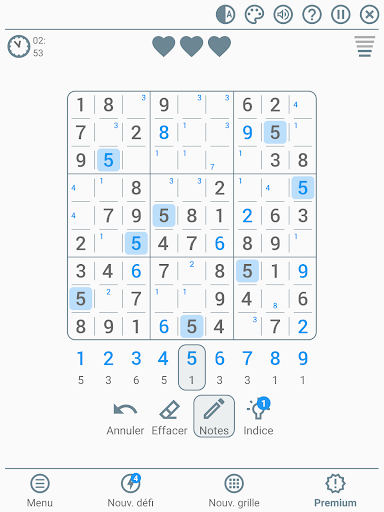 Sudoku classique en français se démarque des autres jeux de réflexion grâce à ces nombreuses qualités et ses nombreuses personnalisations possibles, qui en font l’un des meilleurs jeux de sudoku classique !