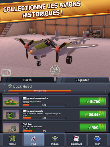GAGNE de l'argent avec tes créations de jets pour améliorer tes avions existants ou débloquer de nouveaux avions à construire. Le choix t’appartient, pilote de jet clicker de l’air force !