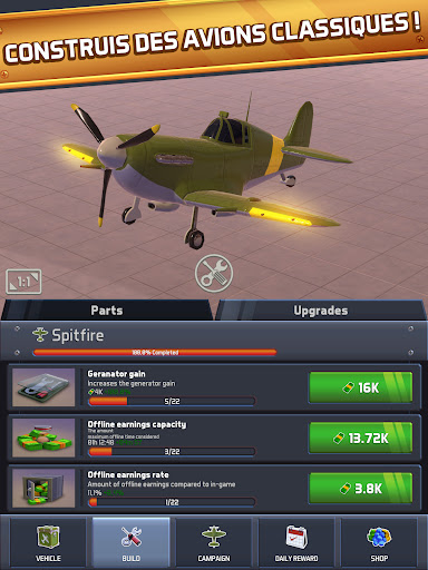 CONSTRUIS d'incroyables avions de guerre de zéro en assemblant des machines volantes à couper le souffle, pièce par pièce, et vis pleinement une expérience de construction clicker d’idle planes stupéfiante !