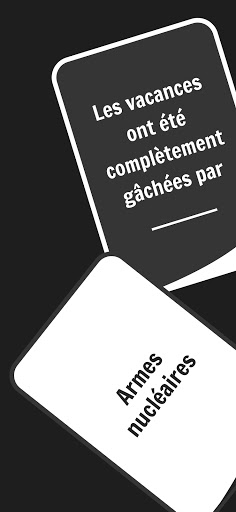 Vous serez présenté à 10 cartes blanches. Ce sont les cartes qui sont dans votre main que vous pouvez utiliser pour remplir les blancs dans les cartes noires. Personne d'autre ne peut voir vos cartes blanches jusqu'à ce que vous les jouiez.