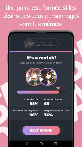 Faites glisser le personnage vers la droite si vous pensez que le personnage que vous avez choisi aimerait sortir avec lui. Si non, faites glisser votre doigt vers la gauche.