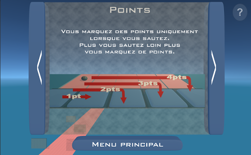 Vous marquez des points uniquement lorsque vous sautez. Plus vous sautez loin plus vous marquez de points.